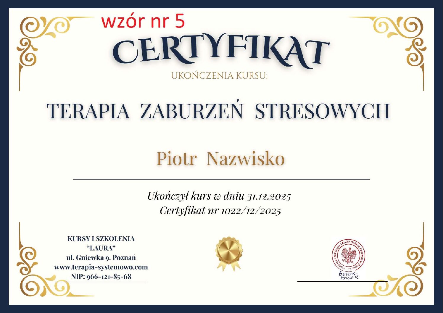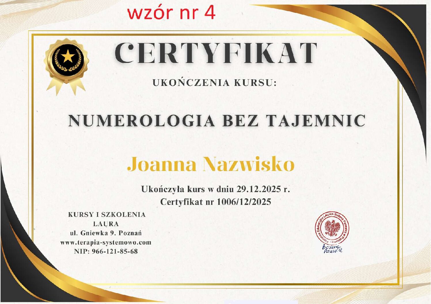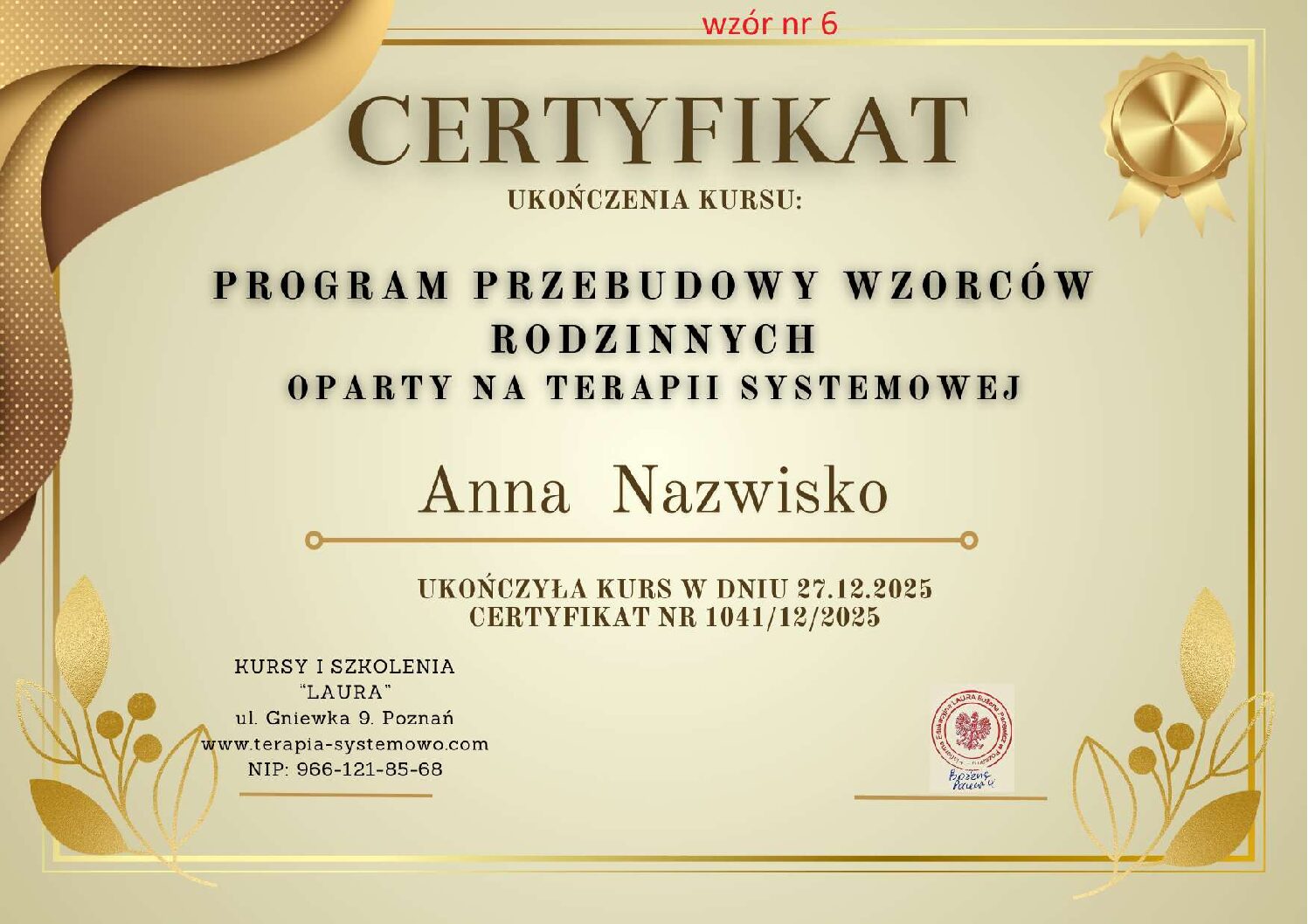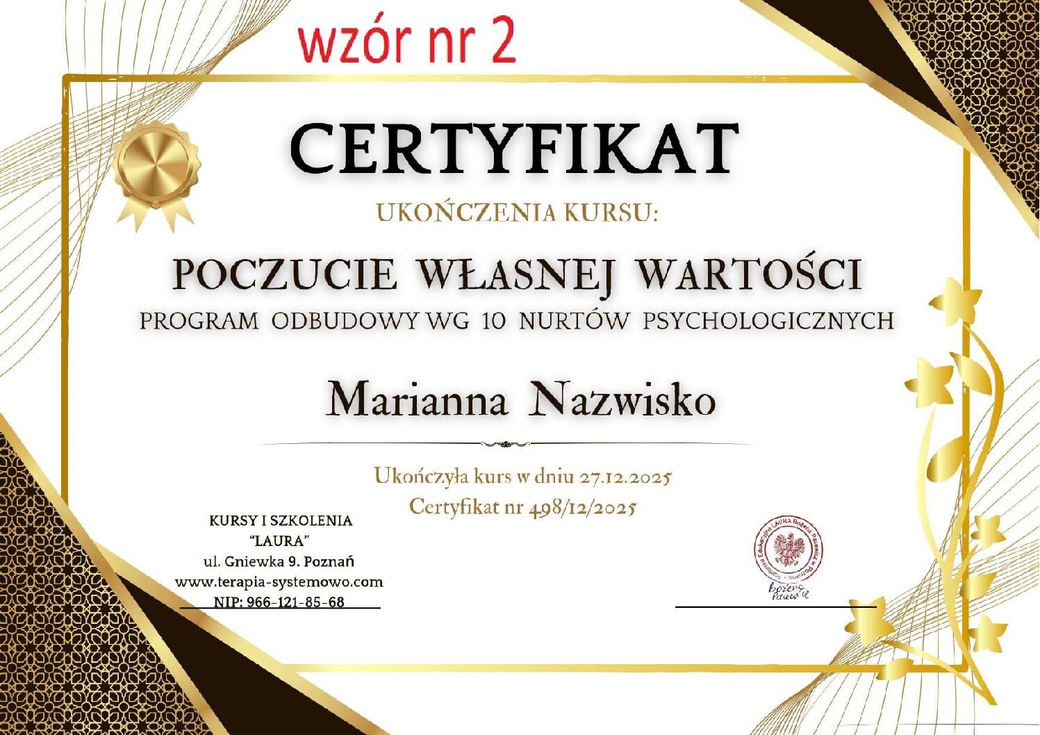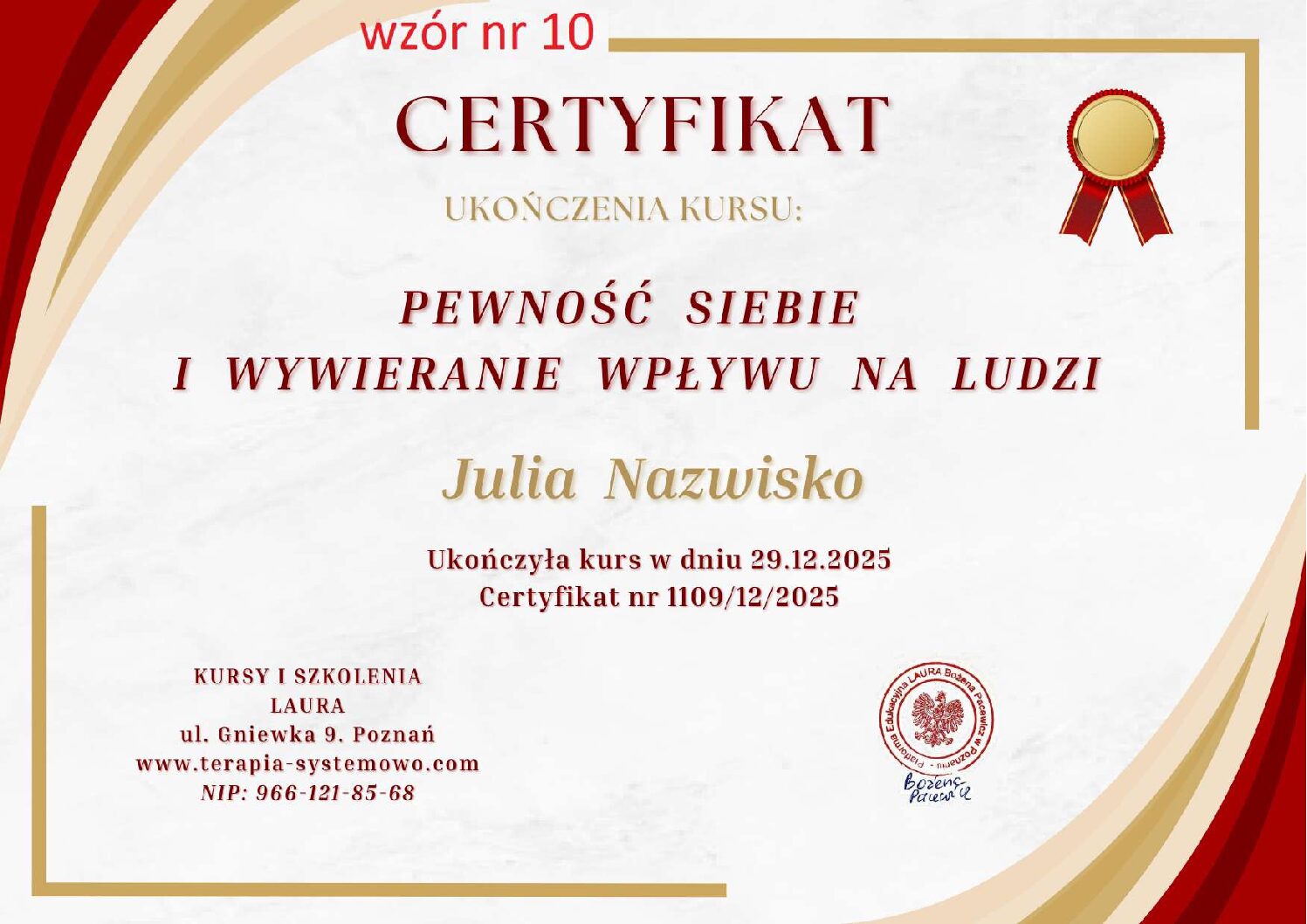 Kontaktując się z nami w sprawie wystawienia certyfikatu proszę w mailu podać numer wzoru certyfikatu, który Państwo wybierają. WZORY od 1 do 11.