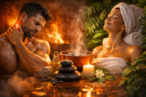 ROZDZIAŁ IV. WSKAZANIA DO TERAPII GORĄCEM Bóle mięśniowe i napięciowe Sztywność stawów Przewlekłe bóle kręgosłupa Zespoły przeciążeniowe Stres i napięcie nerwowe Stany zapalne w tkankach Wsparcie rehabilitacji i fizjoterapii