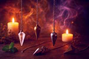 Moduł VIII. Budowa i wybór wahadełka. 1. Typy wahadełek: Izis, Karnak, Thot, stożkowe, sferyczne, spiralne, egipskie, kryształowe. 2. Czyszczenie i „neutralizacja” wahadełka po użyciu — proste techniki. 3. Ćwiczenie: Uczestnik testuje trzy różne modele wahadełek i notuje różnice w ruchu, czułości i wygodzie.